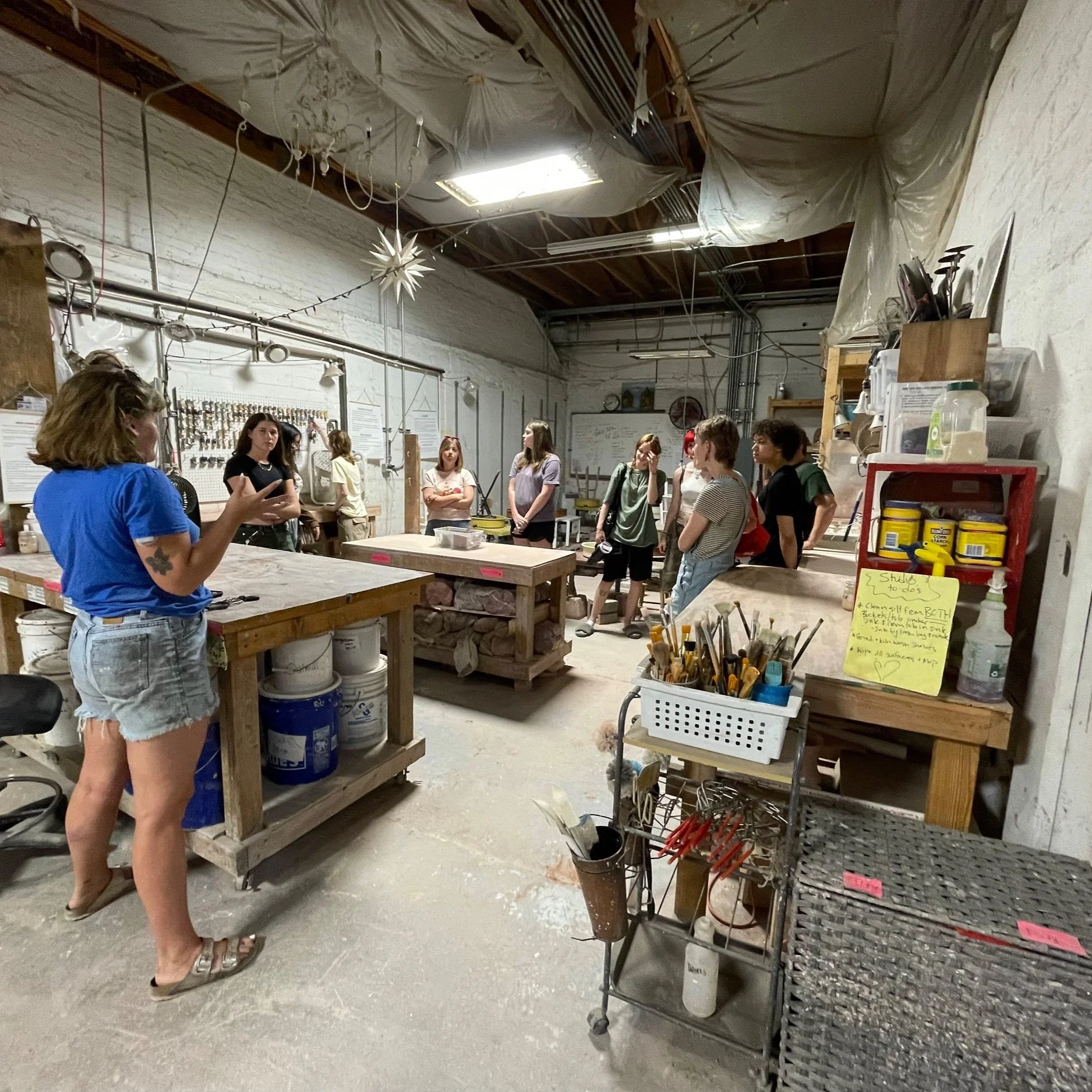 Another fun flashback happened when 9 students from Carolina Friends School came to visit Liberty Arts and learn about our ceramics program, and see how the facility supports multiple mediums and artists. They were able to visit Hannah Schutzengel’s solo exhibition in the gallery, speak to other studio artists present, and talk with JulieRose Hinson, who is a Liberty Ceramics Artist and CFS alum!