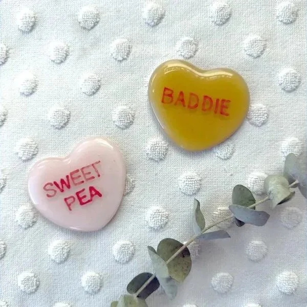 In this hands-on glass art workshop, you’ll create your own custom conversation heart—choosing your heart color and learning how to paint a personal message using glass enamels.