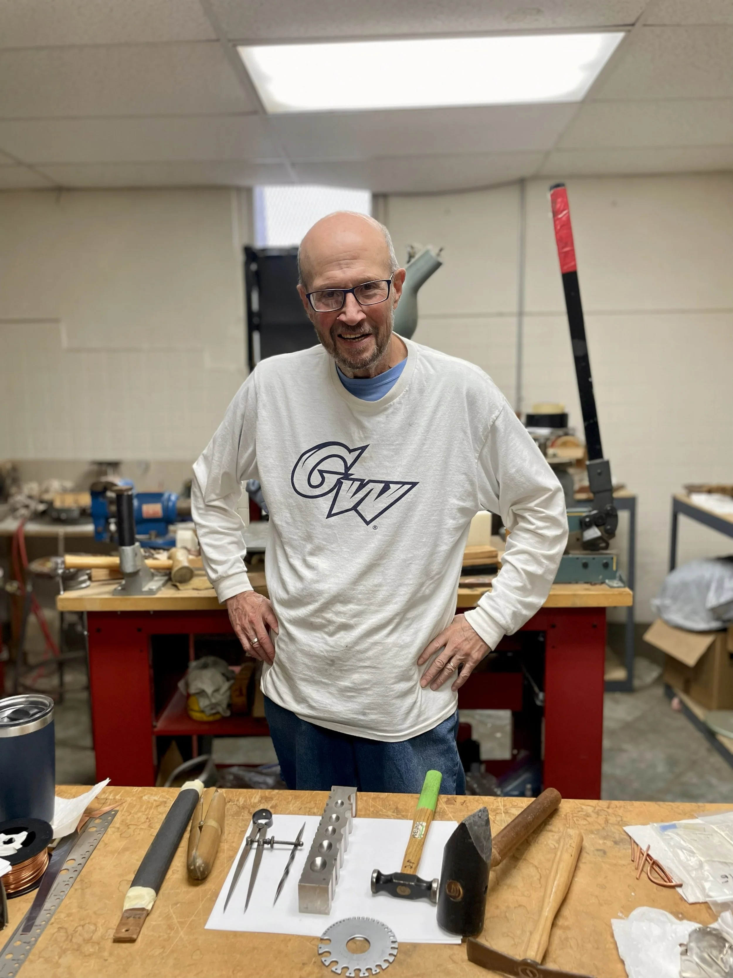Jim Cohen is an academically trained metalsmith with an MFA from the University of Wisconsin, Madison. His work at Liberty Arts represents the next step of a journey which began in the early 1990's at another public art center, the Torpedo Factory in Alexandria, VA.