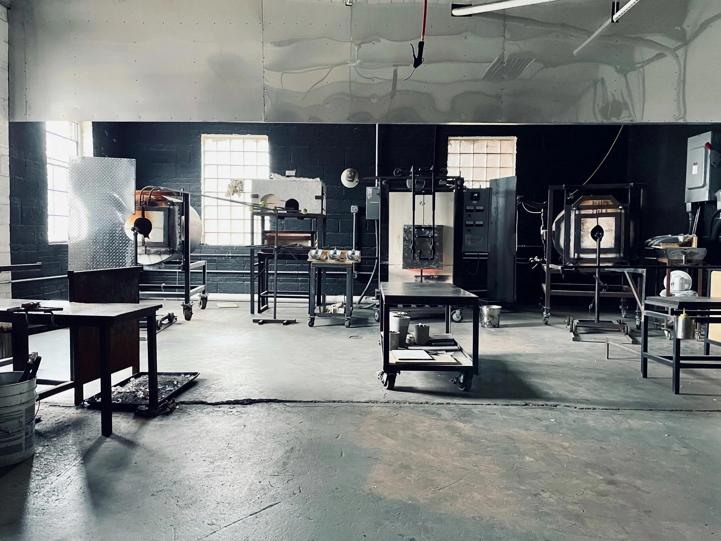 Rental includes access to: glory hole, annealers, torches, garage, and coldworking tools. Pipes, punties, and shop hand tools are available but we suggest renters have and use your their own tools when possible. All tools must be returned to their proper places.